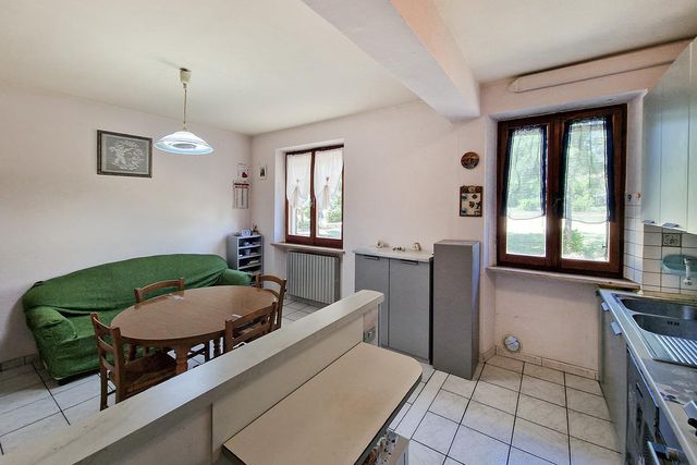 The first building is a house of about 375 sq.m. on three floors, built in the 80s, in perfect structural condition and with splendid views of the valley and the hills, it is divided in the ground floor of about 125 square meters, currently used as tavern with kitchen with a bathroom and a garage, where it is possible to obtain an apartment as well as service areas for customers of a possible agri - camping. The first floor of about 125 square meters plus balconies of about 25 sq.m. has a wide living room, an habitable kitchen connected to a pantry, 3 double bedrooms, a bathroom. On the second floor we have the attic for storage of 125 sq.m. with max height of 2,60 meter.
