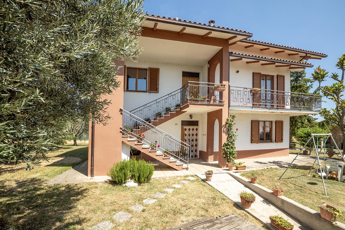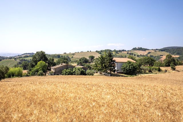 390.000 € ID: 174657Two buildings, one immediately habitable the other to be renovated, with courtyard, barn, warehouse and agricultural land for a total of about 70.000 square meters, with 250 productive olive trees, fruit trees, a well. Extraordinary view of the valley, the hills and medieval cities.