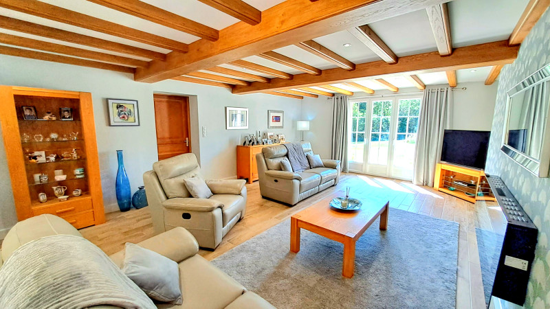 The heart of the home flows seamlessly into the outdoor spaces. A large south-facing terrace overlooks the grounds, perfect for al fresco dining and entertaining, while the swimming pool offers a wonderful spot to relax and enjoy the sunshine. There is also a shady terrace to the rear of 56m2.