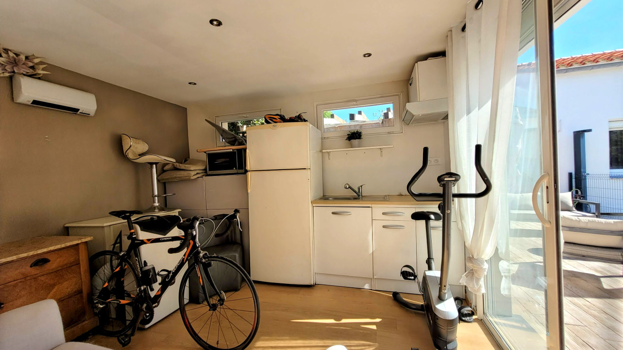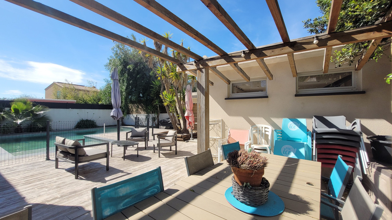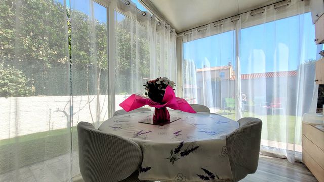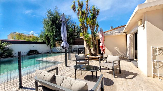 A43450AHA66 - Located in a quiet and sought-after residential area of Canet en Roussillon, just a 5-minute drive from the beach and close to all amenities, this semi-detached villa with an independent studio sits on a landscaped 500 m² plot with no overlooking neighbors.