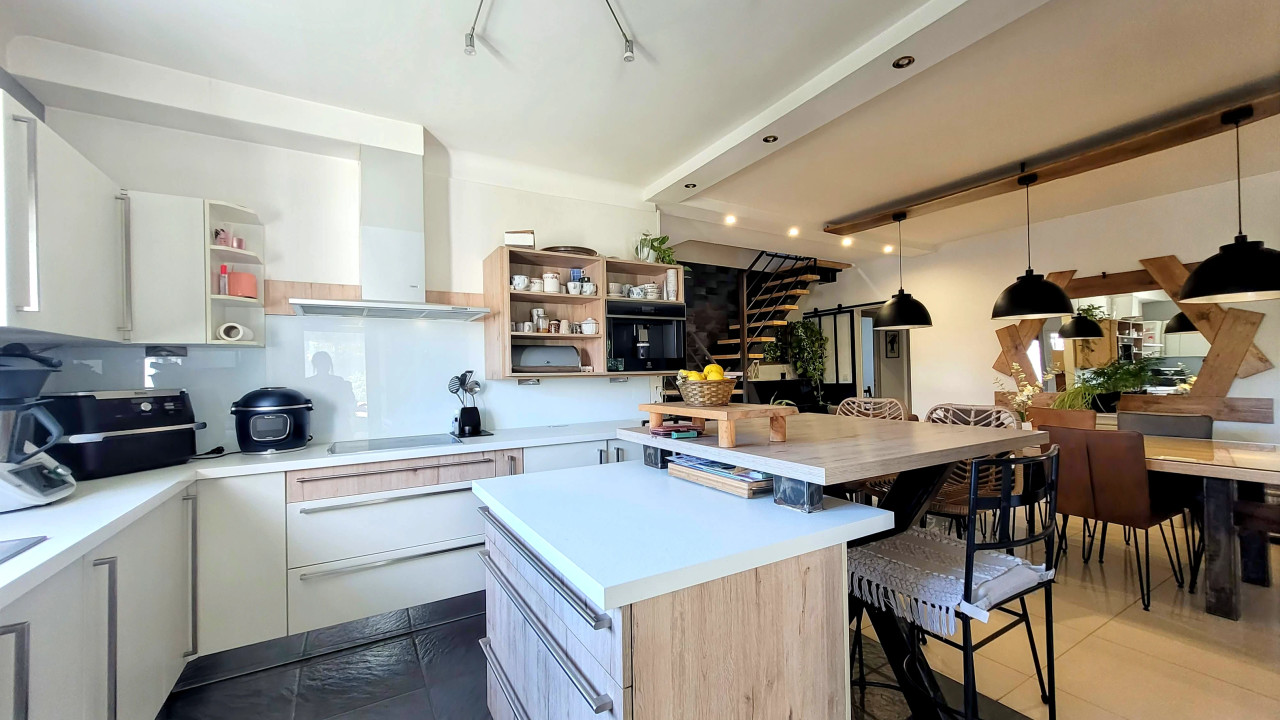 A 30 m² air-conditioned independent studio, garage, and parking space complete the property. Features include double glazing, wood stove, reversible air conditioning, and ample storage. No work required