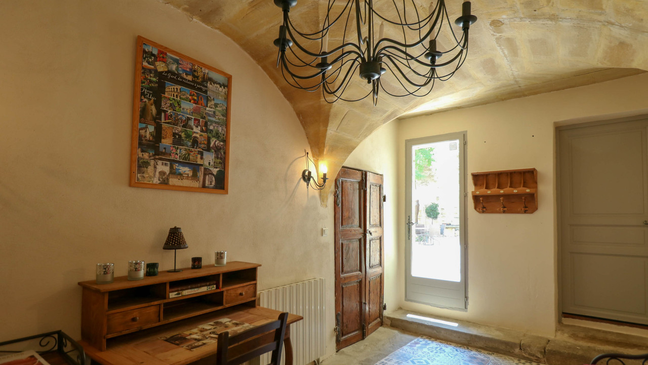 A26673RSI30 - This beautiful property with a lot of character and potential is situated in the centre of a charming village in walking distance to the local shop, library, school, restaurant and bar, not far from a supermarket, pharmacy etc, only 4 km from historic town Uzès with famous Saturday market., conveniently situated for connections to airports & TGV stations at Nîmes (27 km), Avignon (40km) or Montpellier (86 km).