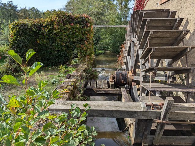 16e-eeuwse watermolen in werkende staat, landelijke omgeving, Indre