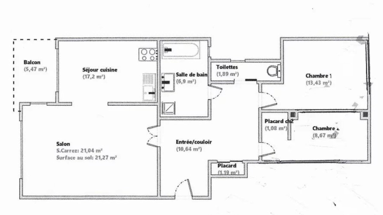 3rd floor apartment (out of 6). 82m², 3 rooms, 2 bedrooms, 1 bathroom, closed garage.