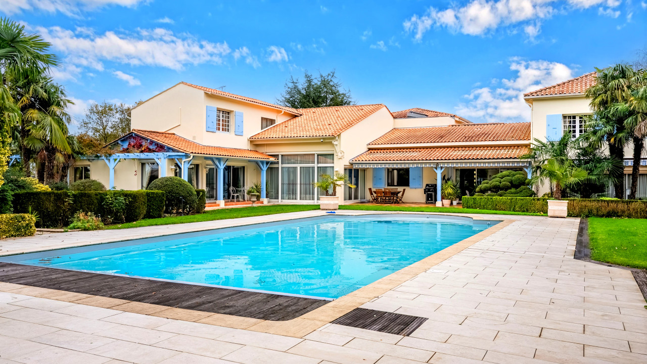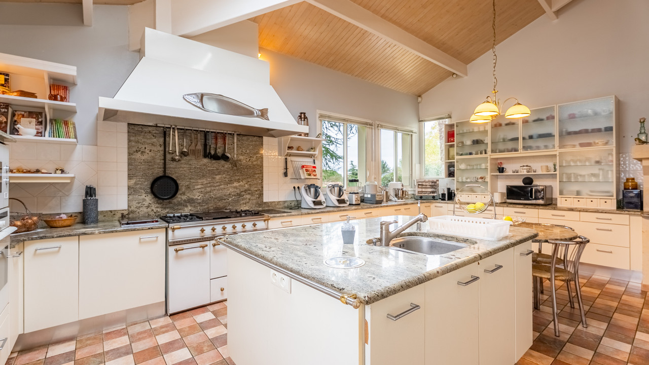This impressive 8-bedroom estate offers generous living space, complete privacy, and beautifully enclosed gardens just minutes from Jonzac. The home features large reception rooms, bright family areas, and spacious bedrooms that comfortably accommodate family and guests.