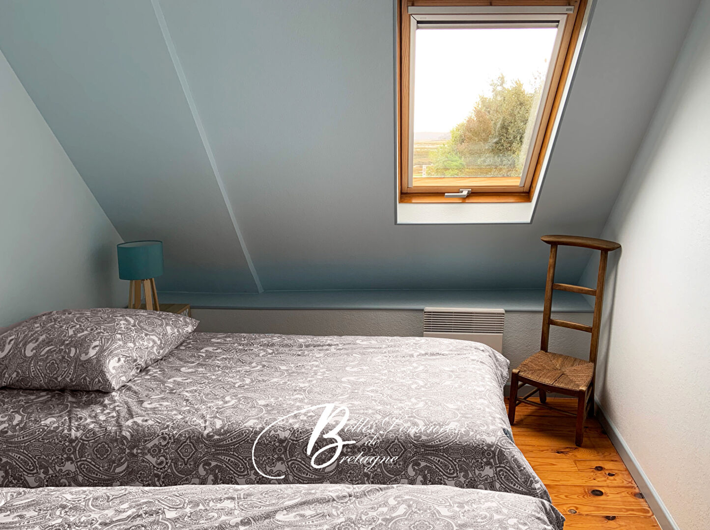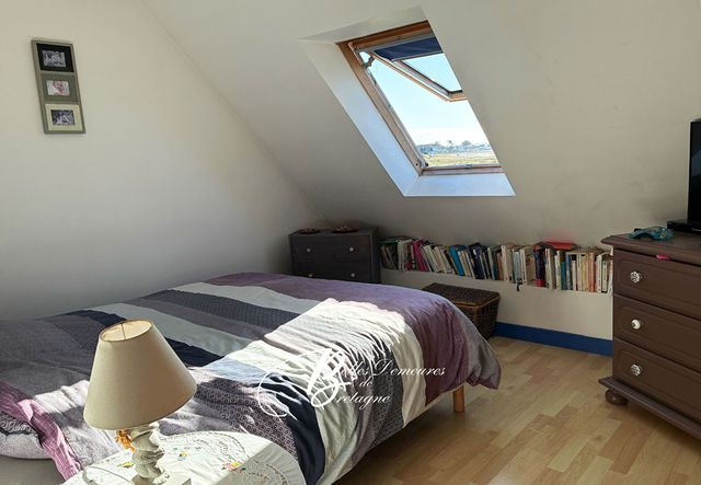 À l'étage, deux chambres, une salle de bains et WC avec vue mer ainsi qu'une grande chambre sur l'aile nord.
