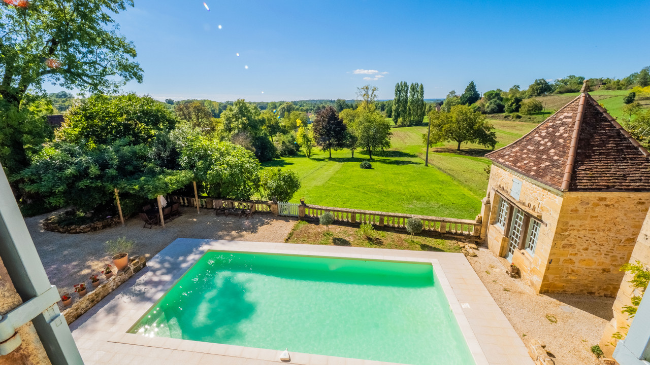 An C18th Manoir in a commanding position, beautifully restored, with a high terrace, pool and lovely
