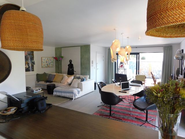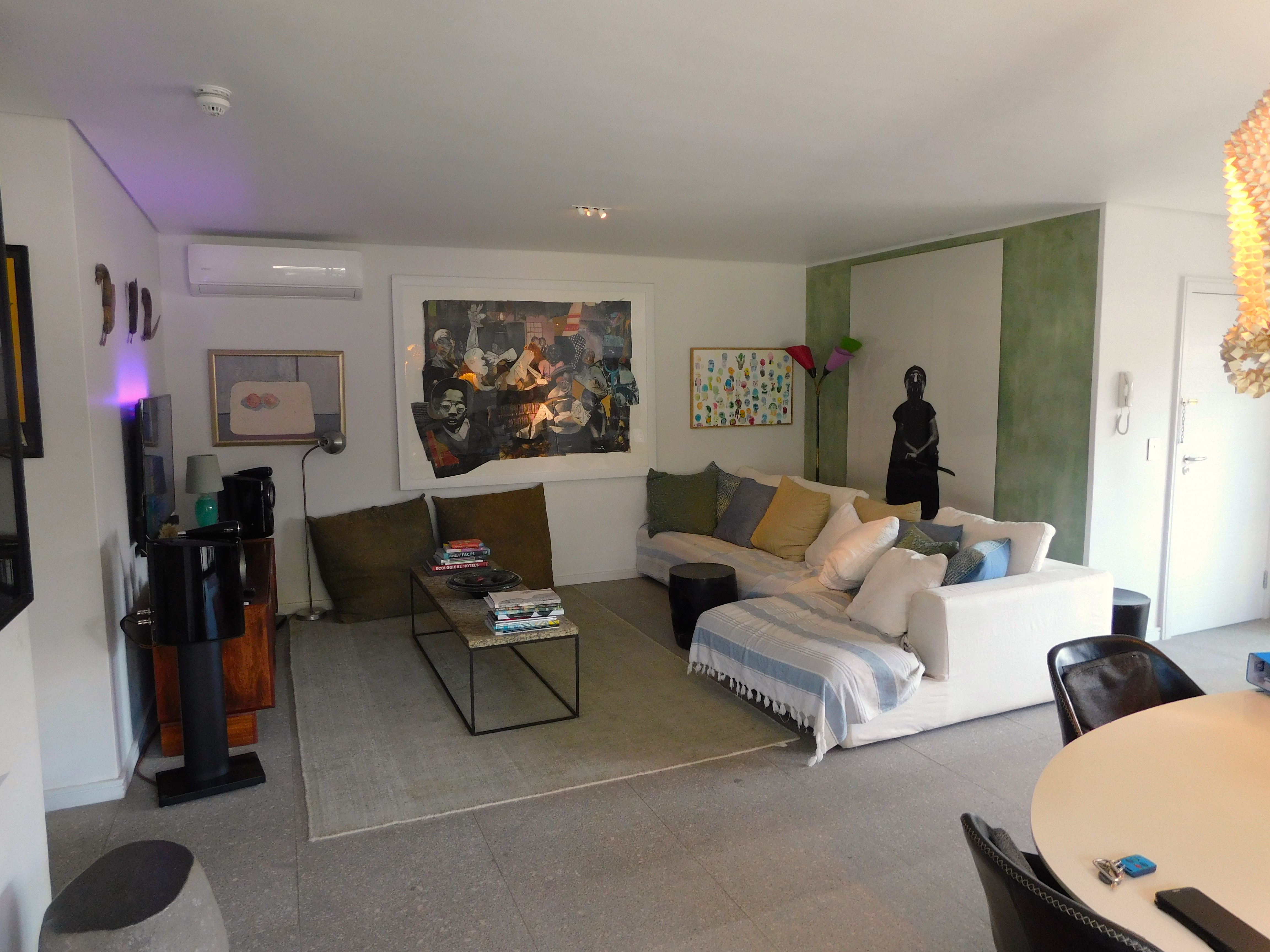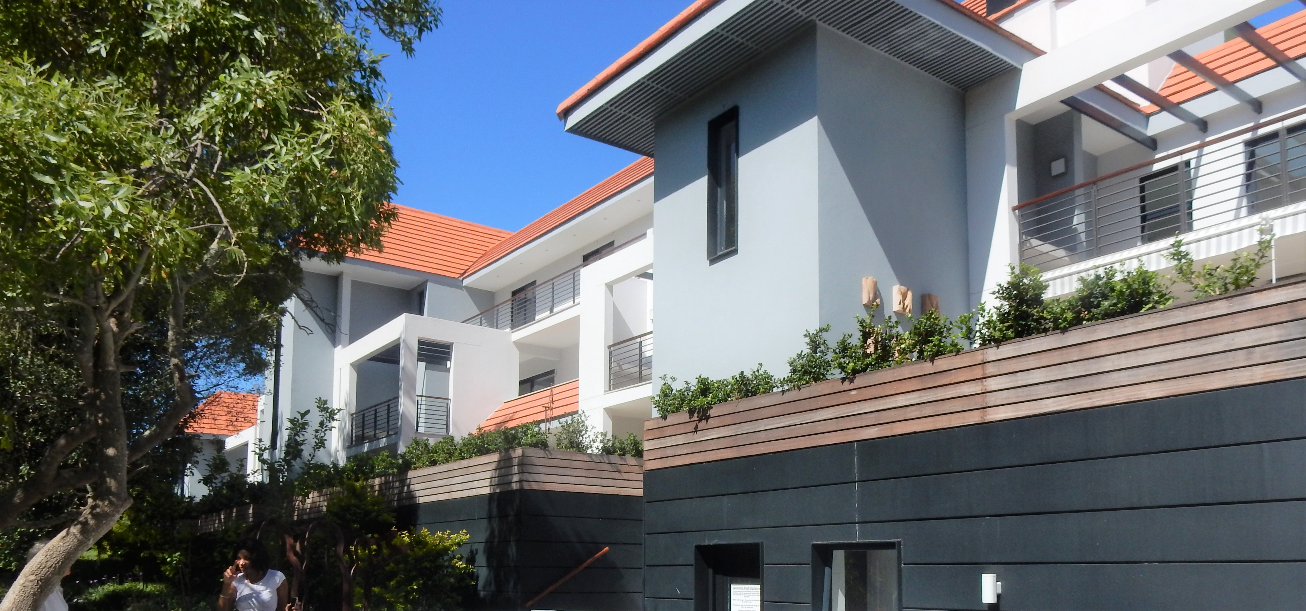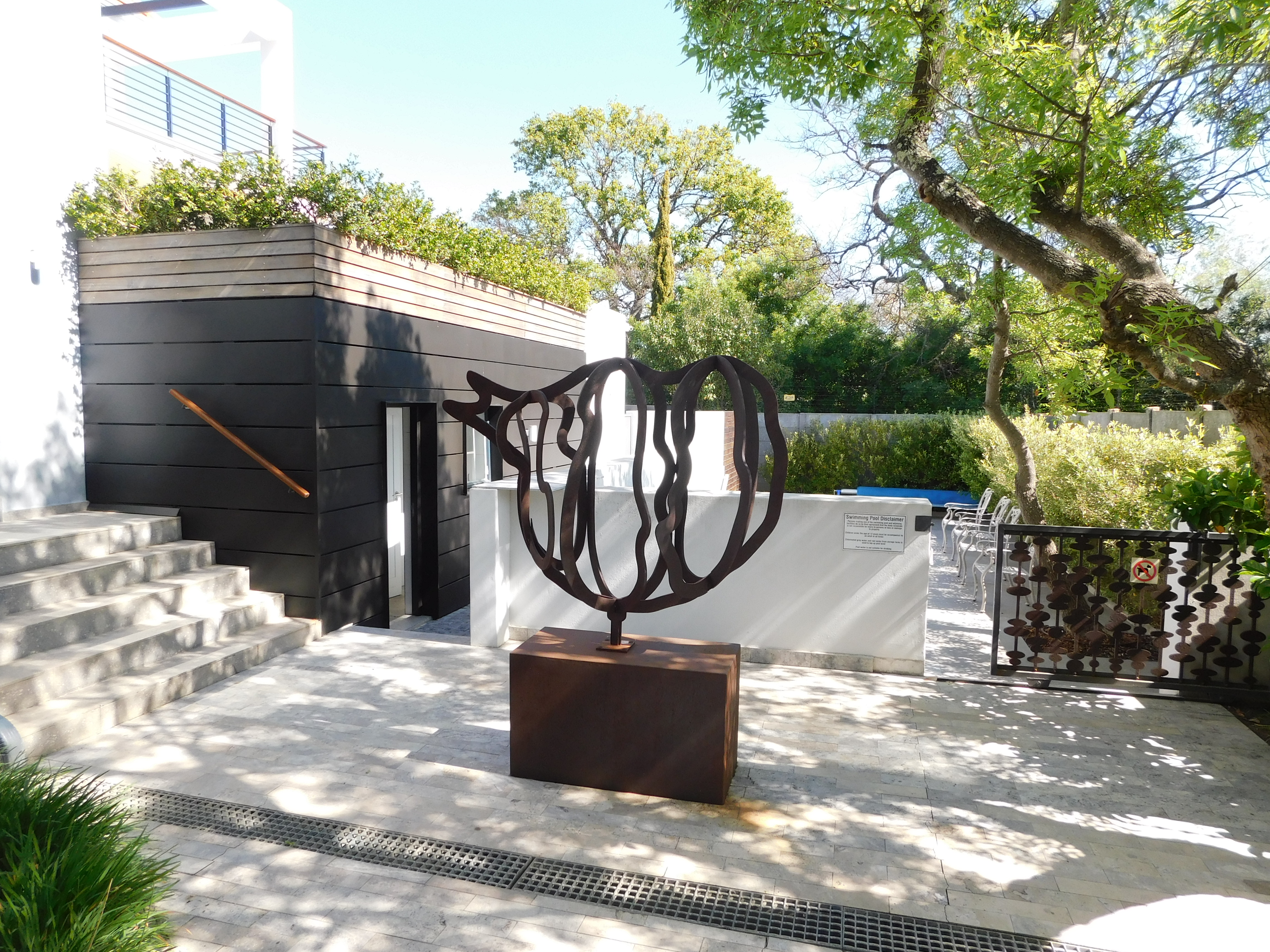The apartment has 2 bedrooms en-suite, a living room with lounge and dining, an open-plan kitchen and a separate scullery/laundry. The lounge and kitchen have access to a private garden with an outside dining area with can be covered by a large awning. The bedrooms have small balconies with a garden view. There is a second secluded terrace with a fishpond and water features. A double garage and a private parking bay with direct access to the flat, are included. The units have luxury finishes, fixtures and appliances of the highest standards.