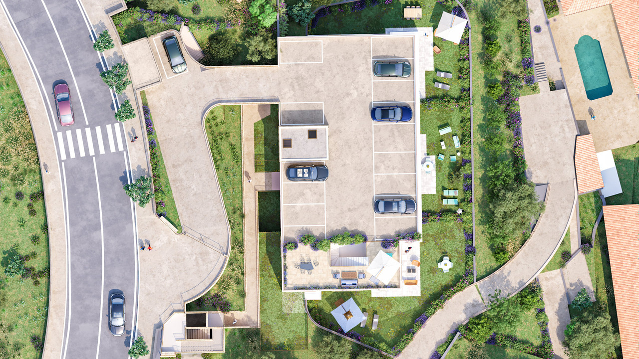 In a hillside residential setting, this address, easy to access, offers many amenities on foot : elegant shops, a mini-market, school and college.