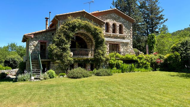Discreetly nestled in a peaceful setting on the outskirts of a picturesque Catalan village, this elegant country residence—built by a renowned French aviator after the Second World War—offers a rare combination of heritage, generous proportions, and lifestyle appeal. Surrounded by sweeping mountain views and set within a mature garden, the property represents a unique opportunity for those seeking sophisticated rural living, with strong potential for guest accommodation or multi-generational use.
