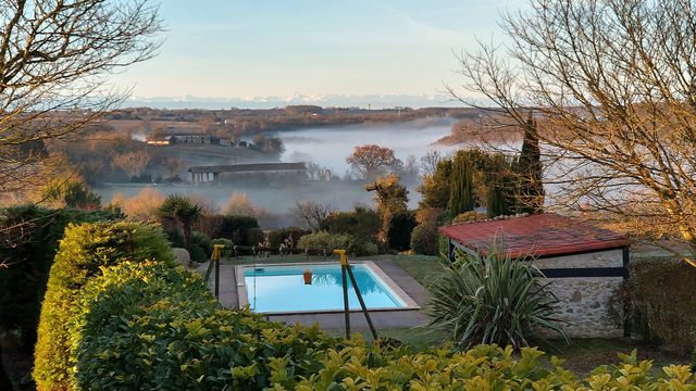Beautiful stone house in a charming setting, views of the Pyrenees, gîte, pool and garden 15 mins fr