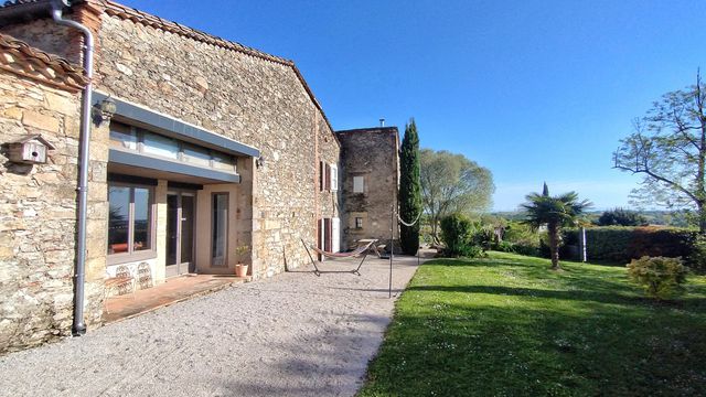 A39338NE81 - Situated in a quiet hamlet, overlooking the rolling hills of the Tarn and the mountains of the Pyrenees and Montagne Noire beyond, you will find this impressive, renovated farmhouse. The property is divided into two parts, but could be easily used as one large house, and currently functions as a popular gîte. There are five bedrooms in total with two bathrooms and the possibility to create additional bathrooms if needed. Both sides of the house have generous kitchens and spacious living areas, ideal for hosting guests or family. The garden offers plenty of spots to relax, outside seating for an evening meal with a view, a large pool and a boules pitch for that full French experience.