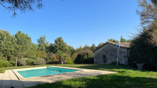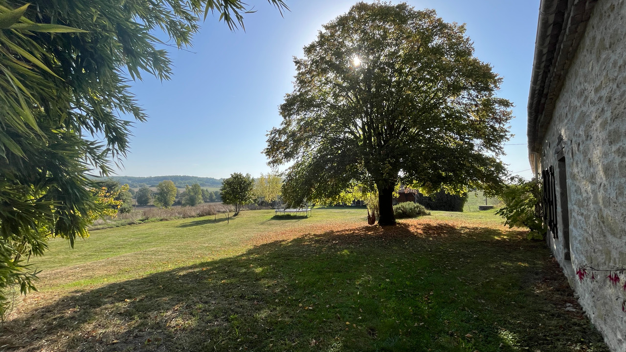 Beautifully renovated stone gite complex with garden, woodland, swimming pool and views.