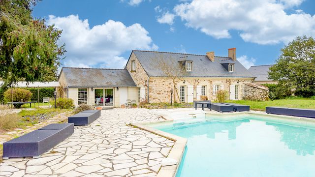 A35719MNL49 - Nestled in the heart of Anjou, this beautifully restored stone house offers the perfect blend of character and comfort. Previously run as a highly successful guesthouse, this versatile home is equally suited as a spacious family retreat. At its heart lies a light and welcoming salon, centred around a magnificent stone fireplace. The generous kitchen and dining areas are perfect for entertaining. The main house offers 3 bedrooms, while an further 3 en-suite bedrooms—each with independent access—are ideal for guests, teenagers, or creative projects. The property showcases original features and authentic local materials—exposed beams, slate, and natural stone. Outside you will find a large swimming pool, sun-drenched terrace, and lawned gardens. The property is located on the edge of the sought-after Petite Cité de Caractère of Blaison-Gohier, with its historic buildings, charming restaurant and primary school. A rare opportunity to embrace the best of Loire Valley village life.