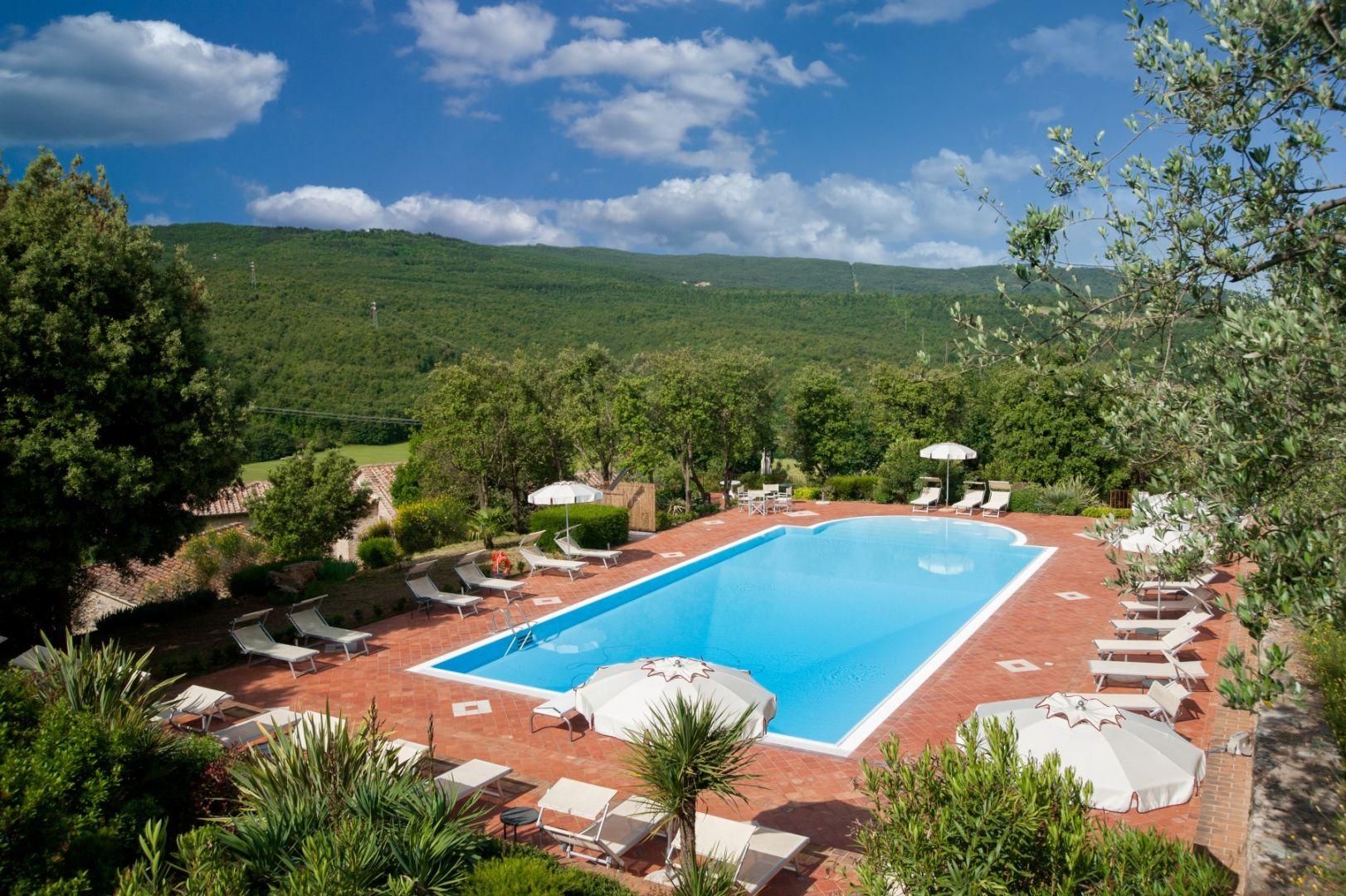 Boerderij op 10 ha met gastenverblijven en zwembad te koop. Bij Sienna