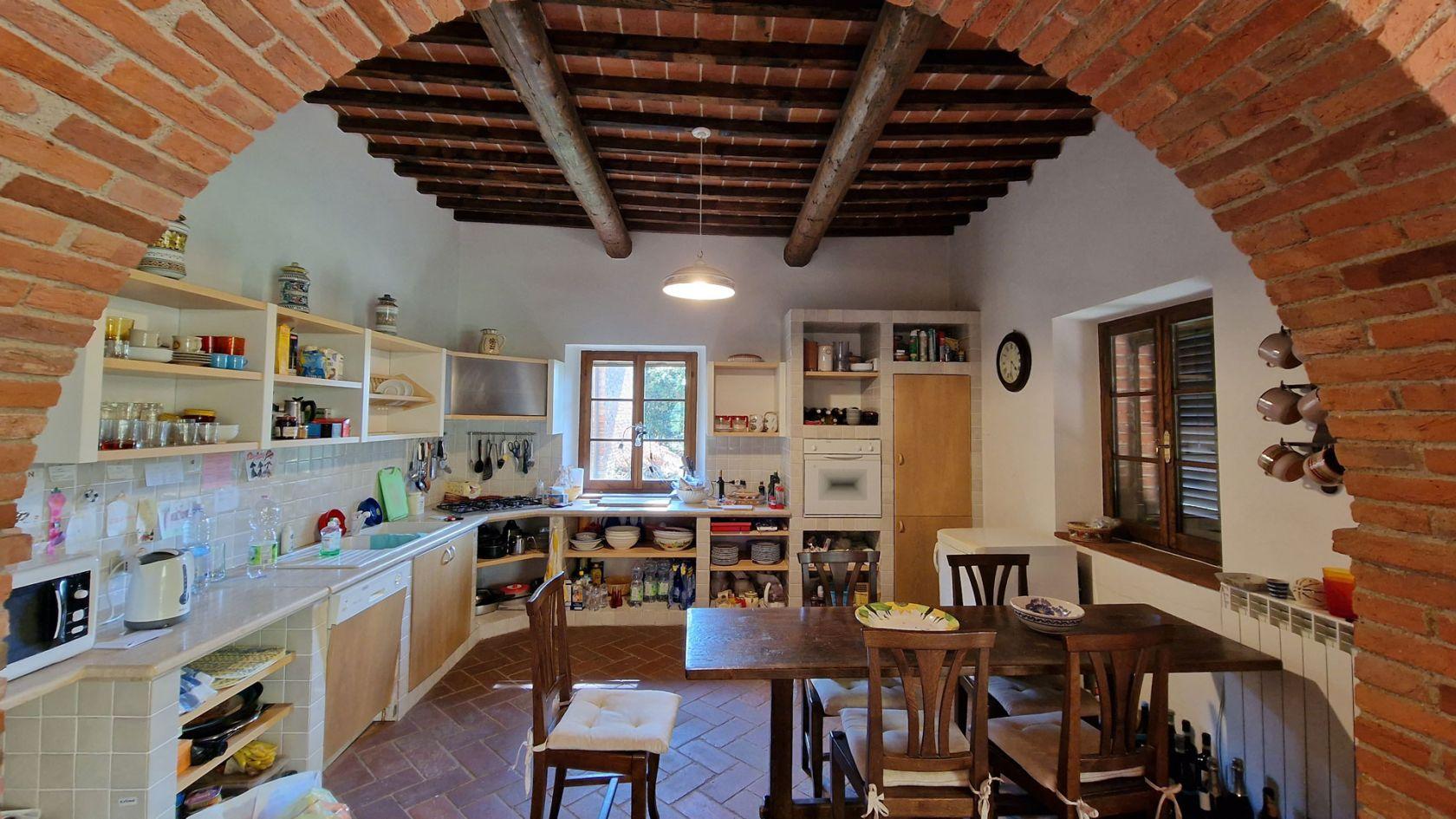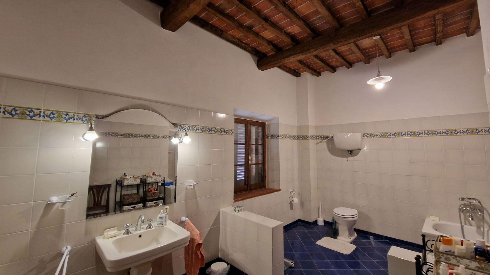 De eerste verdieping is toegankelijk via een interne trap of via een originele stenen buitentrap. Via een typische loggia leidt deze laatste naar het slaapgedeelte, bestaande uit 4 slaapkamers, 2 badkamers, een dubbele woonkamer en een studeerkamer, die toegankelijk is via een heerlijk terras met uitzicht op het Toscaanse landschap.
