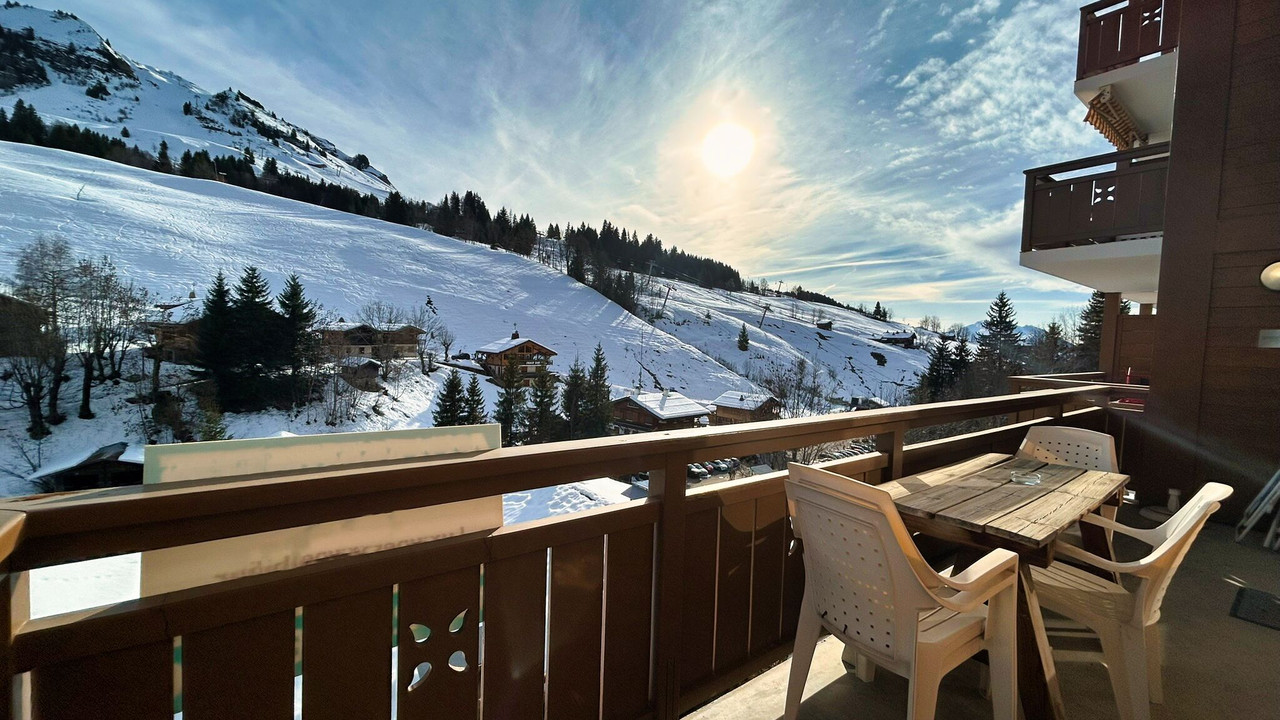 A41219NT74 - Discover this bright and spacious three-bedroom duplex located just steps from the pistes in Chinaillon, part of Le Grand-Bornand in the Massif des Aravis. With dual-aspect mountain views, a balcony, and a generous living area, it blends Alpine charm with everyday comfort. A private garage, cellar, and access to an unusually large ski-locker room add convenience rarely found this close to the lifts.
