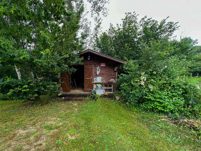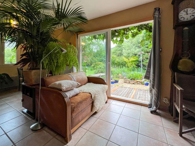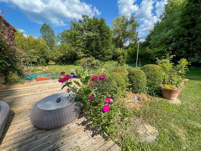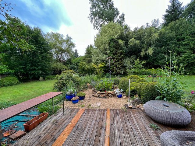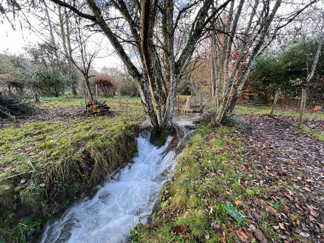 Vijver en beek doorkruisen het terrein en zorgen voor een "natuurlijke" touch. Elektrische verwarming, septictank, dubbel glas timmerwerk.