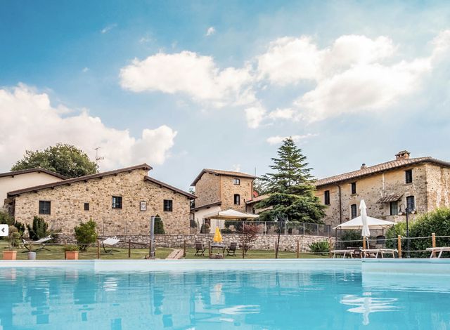 € 1.950.000 ID: 160199Casale in pietra del 1855, attualmente adibito ad agriturismo, con piscina e dépendance, in vendita a Umbertide, Perugia. La struttura, ubicata in posizione panoramica, al confine tra l’Umbria e la Toscana, era un tempo utilizzata per l’essiccazione del tabacco. La proprietà è stata oggetto di un accurato restauro nel 2011 secondo le tradizioni locali, mantenendo inalterate le caratteristiche originali degli edifici. Il casale principale ha una superficie complessiva di 630 mq, su quattro livelli. E’ diviso in tre camere matrimoniali più una per disabili, un monolocale e quattro appartamenti. La dépendance, di 200 mq, è abitata dan proprietari. Inclusi nella vendita, 13 ettari di terreno recintato, certificato biologico, che comprendono un uliveto, una stalla con box per dieci cavalli e una piscina di 15 mq dalla forma irregolare.