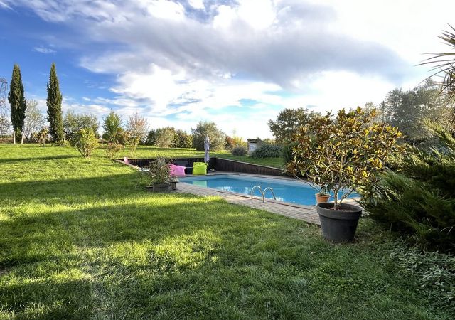 A41266STS81 - Nestled in a charming village in the heart of the Pays de Cocagne, this beautifully restored 348 m² longère offers an exceptional blend of authenticity, space and modern comfort. Set on over 8,300 m² of mature, landscaped grounds, it provides a rare living environment where nature sets the tone for a peaceful and refined lifestyle.