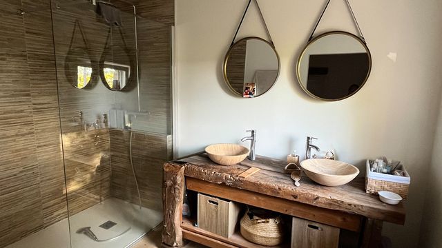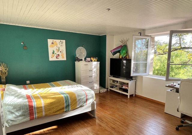 Inside, the property reveals generous and inviting volumes. The former stable has been transformed into a stunning 60 m² living room, perfect for entertaining. The spacious kitchen, complete with an island and traditional bread oven, opens onto a cosy lounge, while the fitted pantry and cellar add practicality to everyday living. The home offers seven bright bedrooms, two contemporary shower rooms and a full bathroom, making it ideal for a large family or hosting guests. Comfort is ensured thanks to a heat pump and two wood-burning stoves.