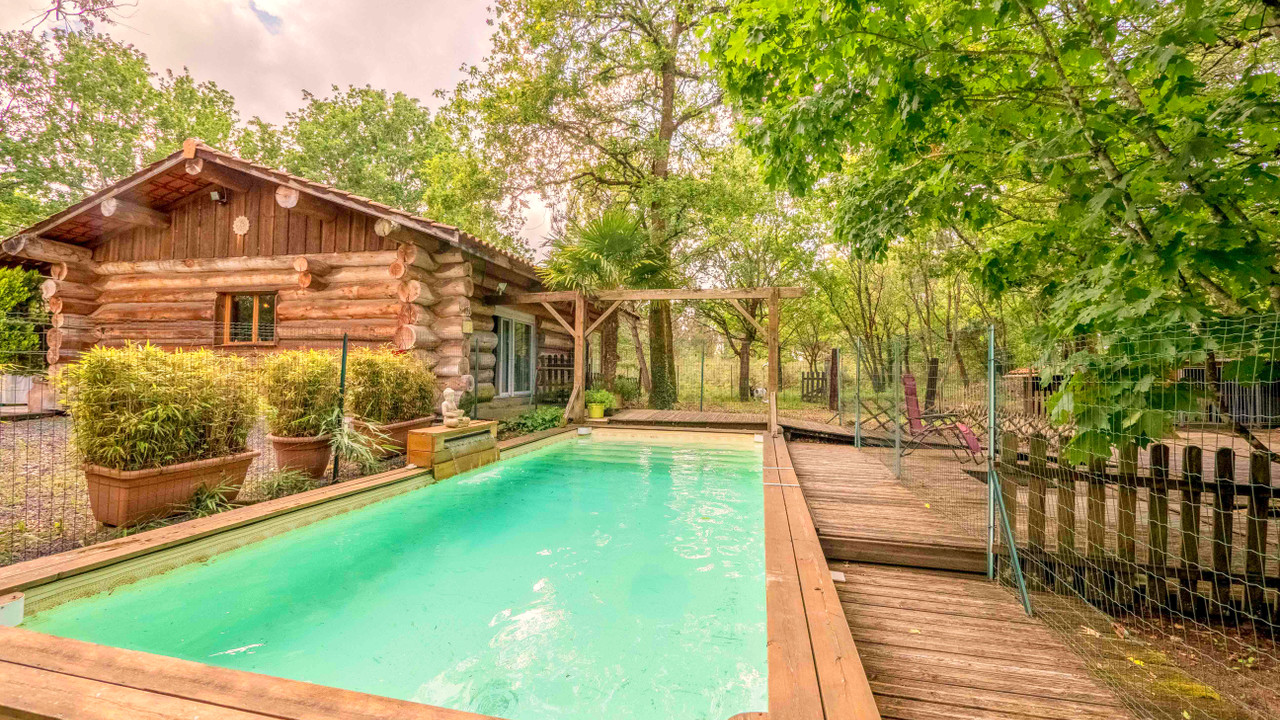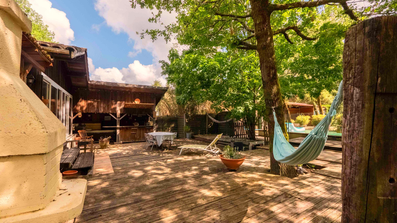 A31454JLC33 - Exceptional property between Biganos and Mios on a wooded one-hectare plot, featuring two spacious houses (186 m² and 76 m²) and a rented apartment. It offers a large terrace, a pool surrounded by greenery, and vast outdoor spaces, ideal for a large family, a guesthouse, or a profitable investment.