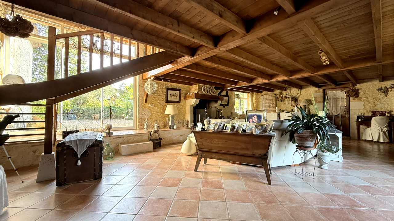 The house impresses with its authenticity and generous volumes: a 42 m² country kitchen fully equipped, a 65 m² bright living room and a 60 m² master suite with direct garden access.