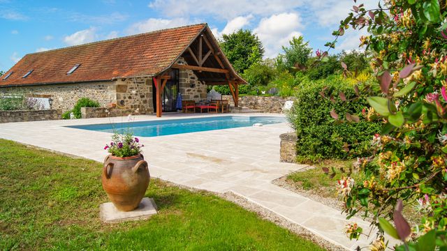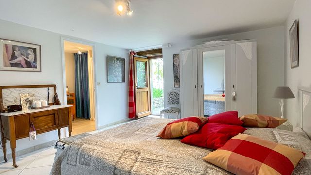 The guest house (or gite) has been converted in the stone barn and includes a living room with open kitchen, 3 bedrooms and another independent en suite bedroom.