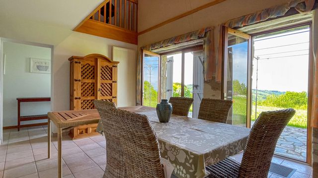 A36913NB46 - Nestled on the heights of a village with shops and services, this vast property will immediately seduce you with its charm: a large stone Quercy house with exposed beams, bolet, souillarde, bread oven... its barn with courtyard and terrace overlooking the pool with panoramic views of the Quercy hills.