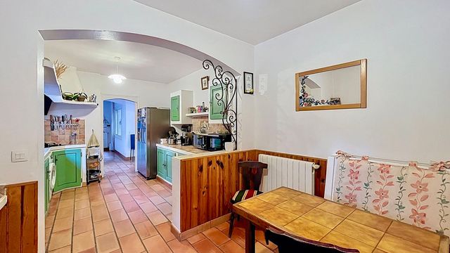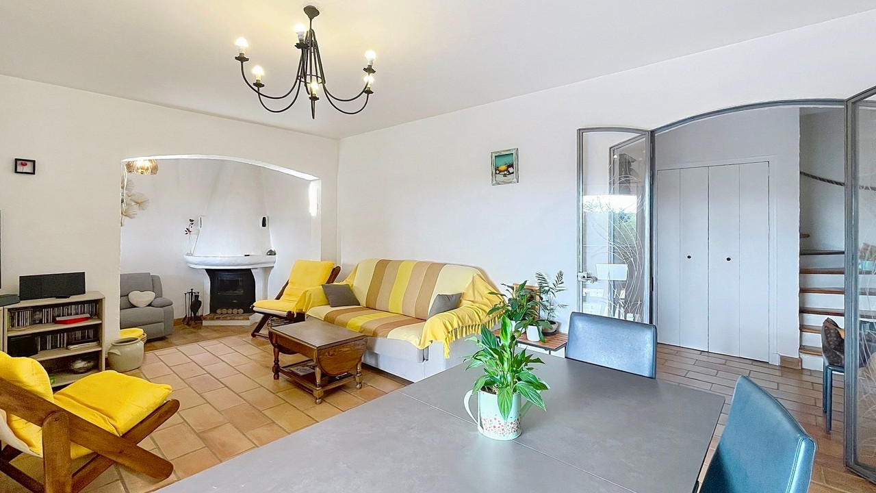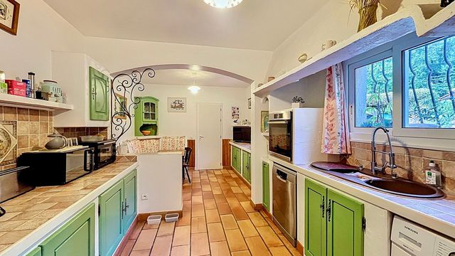 The ground floor features a luminous living room with wood stove, an independent fitted kitchen, and a spacious master suite that can be reconfigured into two bedrooms. Upstairs, another generous bedroom opens onto a panoramic terrace. On the garden level, an additional room offers multiple uses, from office to guest bedroom. With its garage, cellar, carport and private parking, this property is a rare opportunity for those seeking space, serenity and superb views.