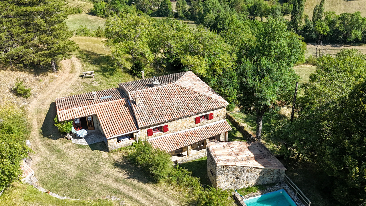 A38461NEB26 - Tucked away in a tranquil valley of the Drôme Provençale, this former stone farmhouse offers rare charm, plenty of space, and a magnificent natural setting on 16 hectares of land. Located in Vesc, between the Vercors and Mont Ventoux, this is the perfect opportunity for those seeking calm, beauty, and inspiration in southern France.