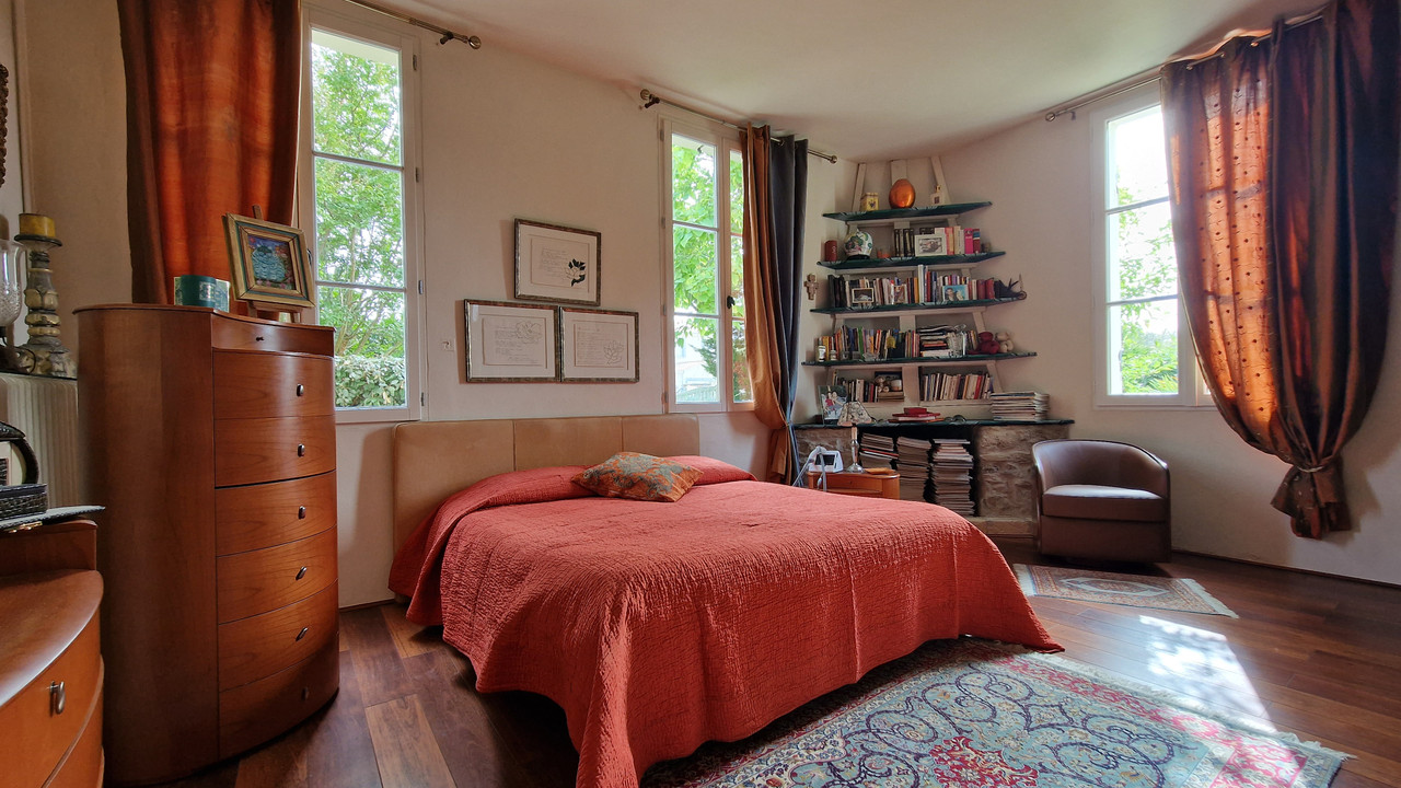 The 3 bedroom gîte is a separate building to the chartreuse and has potential for year long rental. From spring to autumn, rental is primarily to tourists looking for the proximity to Bordeaux, the Médoc wine Chateaux as well as Atlantic beaches. During the winter, rental demand is high from companies looking to house their employees close to Bordeaux. Current rental revenue is available on request. The gîte has a fully equipped kitchen, dining room, 2 shower rooms each with wc, 1 independent ground floor bedroom and 2 bedrooms on the 1st floor. The centre piece of a double glazed veranda is a stone fireplace, perfect for chilly evenings.