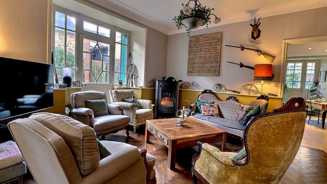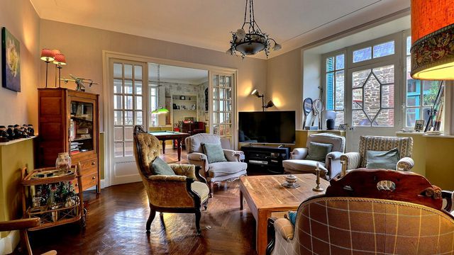 A41319JFD35 - LEGGETT Immobilier presents this elegant 19th-century property located in the heart of Combourg, completely renovated and offering authentic charm combined with modern comfort. The house comprises a welcoming entrance hall, a games room, a cosy living room with a wood-burning stove, a dining room and a separate kitchen equipped with a range cooker and a wine cellar. The upper floors feature four large, bright suites with en-suite shower rooms or bathrooms and WCs, a study that could be used as a bedroom or dressing room, and a laundry room. Outside, an enclosed garden, a patio with a jacuzzi and an outbuilding complete the property. Close to shops and the railway station, this property is a rare opportunity, ideal for running a bed and breakfast or welcoming family and friends in a peaceful and sought-after setting.
