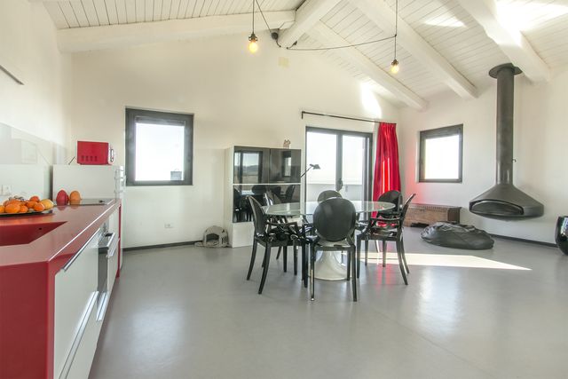- On the first floor there is a large and bright open space of about 50 sqm with kitchen, dining room and relaxation area, bathroom and 2 terraces each of about 30 sqm to the east and west that offer breathtaking views of the sea, the Marche countryside, the Sibillini mountains and of Fermo.