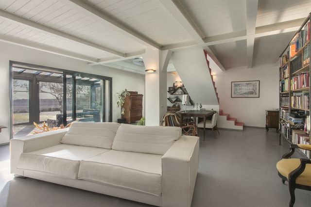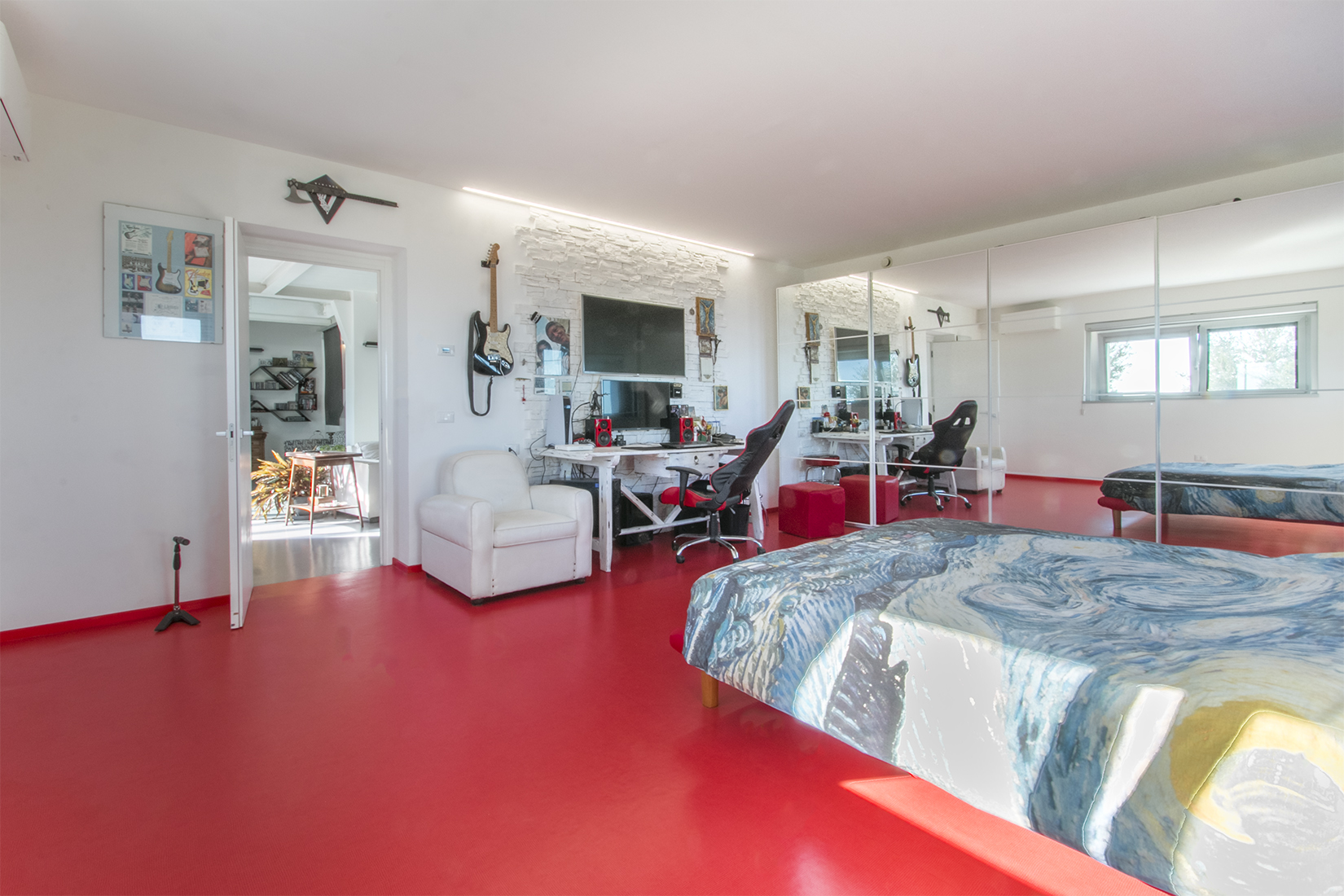 - On the ground floor there is a large living room with a Focus fireplace, a glass veranda (warm even in winter), bathroom with pool tub and pellet stove. A large room currently used as a storage but which can be converted into a kitchen – the connections already present – or into a study. On this floor there are two double bedrooms, one of 20 sqm and the other of 30 sqm which could be divided into 2 doubles or one double and one single.