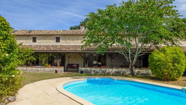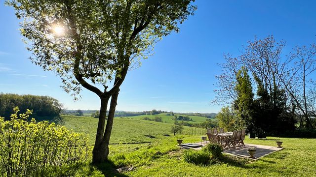 The grounds include paddocks and mature gardens, ensuring complete privacy without isolation. Located just 2 km from the charming bastide town of Eymet, and within easy reach of Bergerac airport (30 minutes) and Bordeaux (2 hours), this is a rare opportunity to enjoy tranquil countryside living with excellent accessibility.