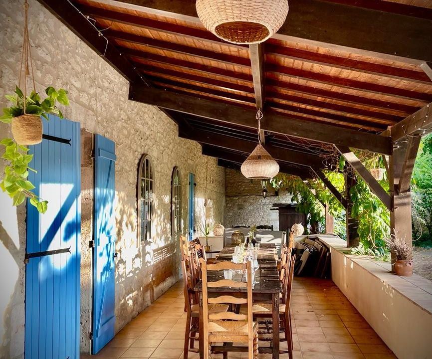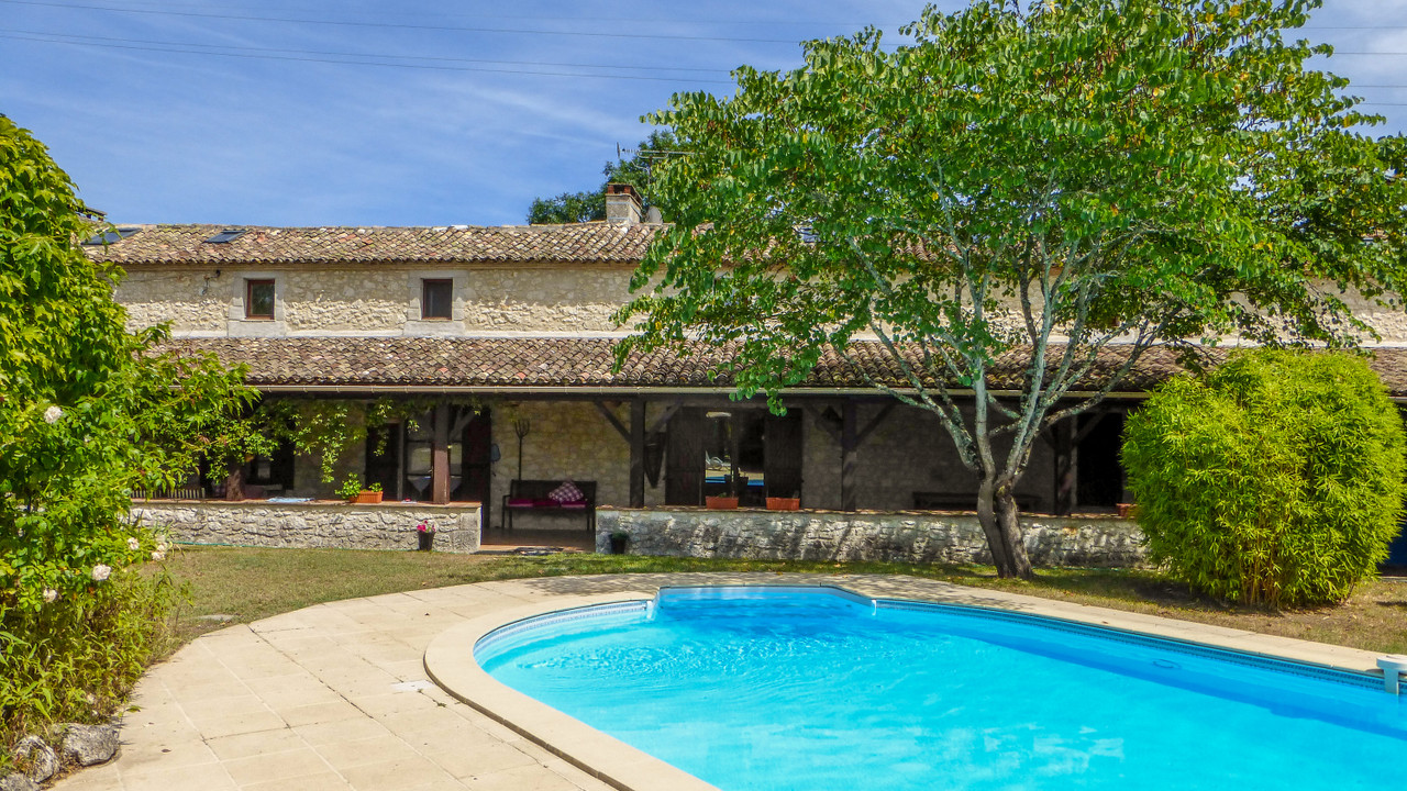 A superb 76 m² covered terrace runs the length of the house, overlooking the pool and gardens. Two independent guest cottages provide further accommodation or income potential, while two large barns offer exciting scope for conversion.