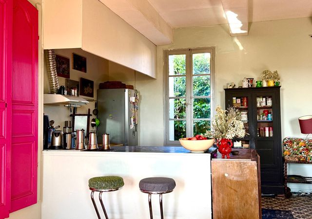 A34294IEG34 - This delightful 358m2 home, full of South of France charm, may seem unassuming at first, but it quickly reveals its true potential. With stunning panoramic views and expansive, light-filled living spaces, this property offers high ceilings and a warm, inviting atmosphere. Boasting three to four generously sized bedrooms, it's a haven of comfort and tranquility. Below, a vast garage and spacious 116 m2 studio provide endless opportunities for creative pursuits or development. Above, the residence sits peacefully, accessible via a serene, almost oasis-like courtyard garden where we find the front/main entrance.