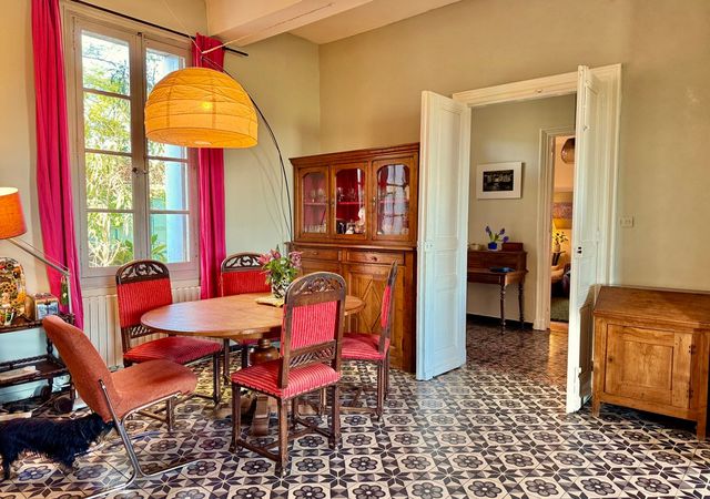 A34294IEG34 - This delightful 358m2 home, full of South of France charm, may seem unassuming at first, but it quickly reveals its true potential. With stunning panoramic views and expansive, light-filled living spaces, this property offers high ceilings and a warm, inviting atmosphere. Boasting three to four generously sized bedrooms, it's a haven of comfort and tranquility. Below, a vast garage and spacious 116 m2 studio provide endless opportunities for creative pursuits or development. Above, the residence sits peacefully, accessible via a serene, almost oasis-like courtyard garden where we find the front/main entrance.