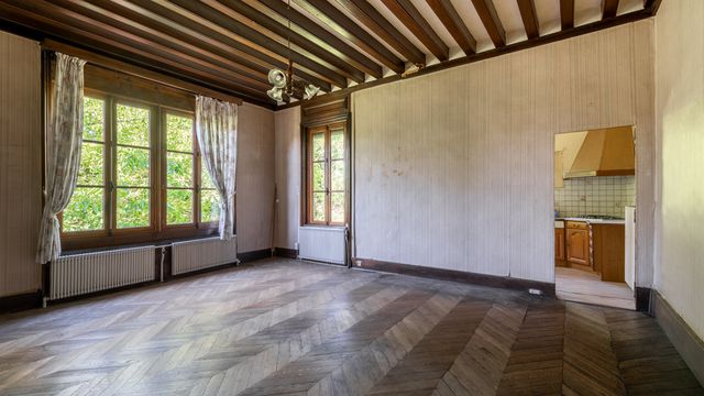 A38556MRO27 - Chalet Malherbe is a charming 19th-century house located in Cormeilles, between Paris (2:30) and the Côte Fleurie. Close to Honfleur and Deauville, it charms visitors with its authenticity: carved woodwork, old bricks, exposed beams, and a marble fireplace. Two buildings connected by a wooden walkway offer 475 m² of living space on a wooded plot of 3,868 m². The main house (258 m²) comprises beautiful reception rooms and four bedrooms. The second building (217 m²) offers several dwellings to be redesigned. A rare property in the heart of the Pays d'Auge, ideal for a lifestyle project or hospitality business.
