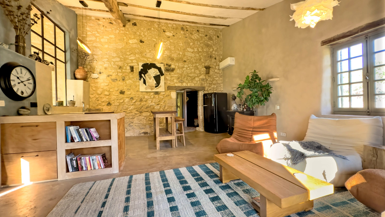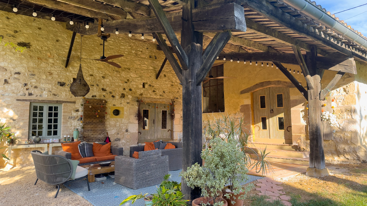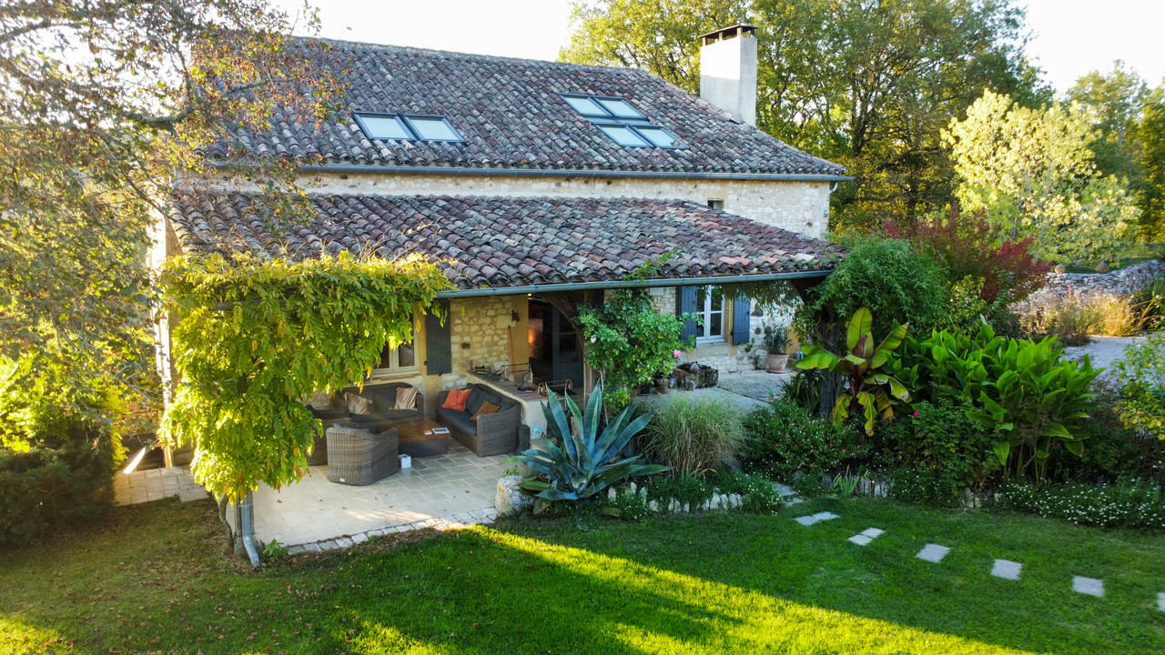 A43160ANW47 - This exceptionally restored stone farmhouse offers refined country living between three sought-after bastide towns on the Dordogne and Lot-et-Garonne border. The beautifully crafted main house provides three double bedrooms, each with its own en-suite bathroom, finished with the finest traditional materials and impeccable style. A connected two-bedroom self-contained apartment and a separate one-bedroom guest house offer superb flexibility for extended family, guests or rental income. A large barn adds further potential. The landscaped gardens are truly remarkable, with sweeping lawns, wildflower meadows and a pond framed by exquisite planting. A large in-ground swimming pool with terrace enjoys panoramic countryside views, creating a private and tranquil retreat in one of south-west France's most desirable settings. Early viewing strongly recommended.