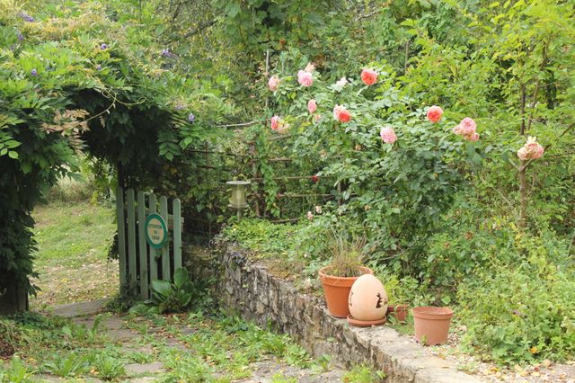 Er is een tuin rondom het huis die erg privé is en een boomgaard omvat waar verschillende oude appelsoorten groeien.