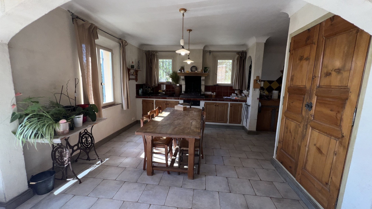 A33346GWI83 - Pretty Provencal Bastide close to the village of Cotignac and about 10 minutes walk to all amenities, This adorable bastide is located on an enclosed plot of 930 m², planted with Mediterranean species. Not overlooked, quiet, in a dominant position, it offers an exceptional and unique panoramic view of the entire surrounding countryside. The garden has an above-ground swimming pool (possibility of installing a beautiful swimming pool). Entrance with hallway, living / dining room with an insert fireplace. Pretty equipped Provencal kitchen, pleasant terrace with its trellis on the south side, wc. Upstairs: 3 bedrooms, dressing room, bathroom, wc. In the garden there is a small stone building converted with a bedroom, private shower room and toilet. Adjoining garage with storage and mezzanine. The workshop (16 m²) also adjoining can be converted into an additional bedroom, office, etc. Located in a sought-after area, this house with quality materials benefits from an ideal location