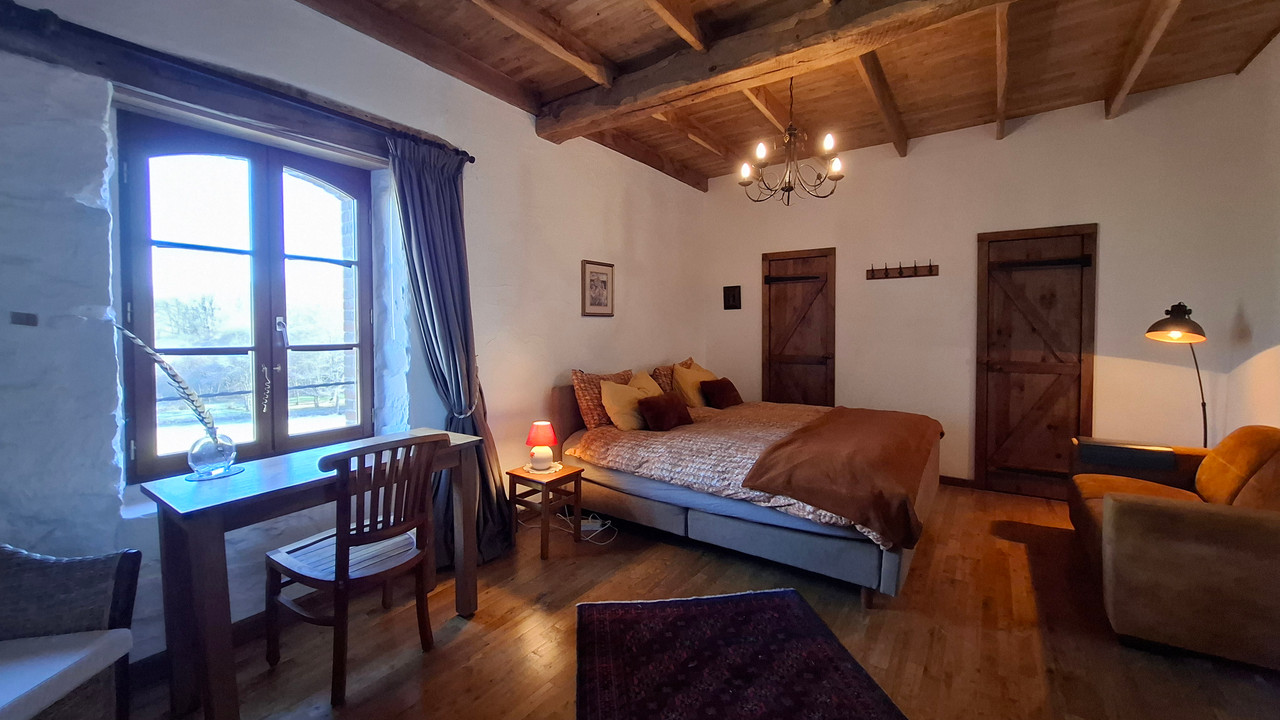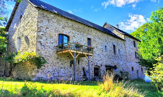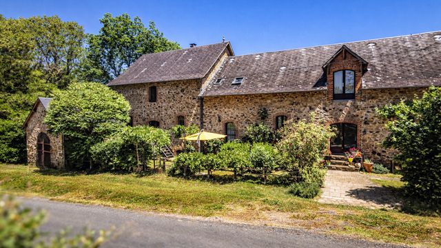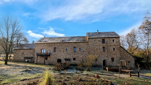 A42128LAD87 - Stunning renovated French watermill with breathtaking views, over 2 hectares of private land, including river, woodland, and gardens. The property comprises a central residence with 2 bedrooms (one ensuite + an additional 15m² bedroom with ensuite) and two self-contained gîtes, each with its own kitchen, living area, and bedrooms, currently operated as gîtes/B&B. Total living space 350m² with oak floors, beams, stone walls, and modern comforts. Features include 2 woodburners, gas central heating, 200m² former watermill, stone barn & outbuilding, workshop, yoga studio, greenhouse, vegetable garden, and solar panels. Private yet just 10 mins from shops, 15 mins from Saint Yrieix la Perche, 25 mins from Limoges. Perfect for family living, gîte/B&B business, or rural retreat.