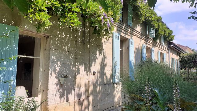 This is a beautiful character house with potential to increase the living space, currently with 2 lounges, large dining kitchen, 3 good sized bedrooms, separate studio, large outbuildings including wine chai with equipment, tasting room, storage. Around 2 hectares of organic vines currently "en fermage", pool with terrace, garden area with terrace. In the most beautful spot in the middle of the Côte de Bourg vineyards, close to a village between Bourg & Blaye, around 40km north of Bordeaux.