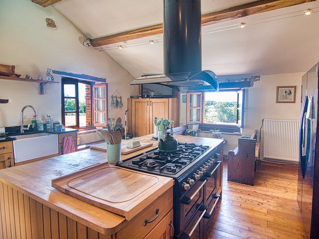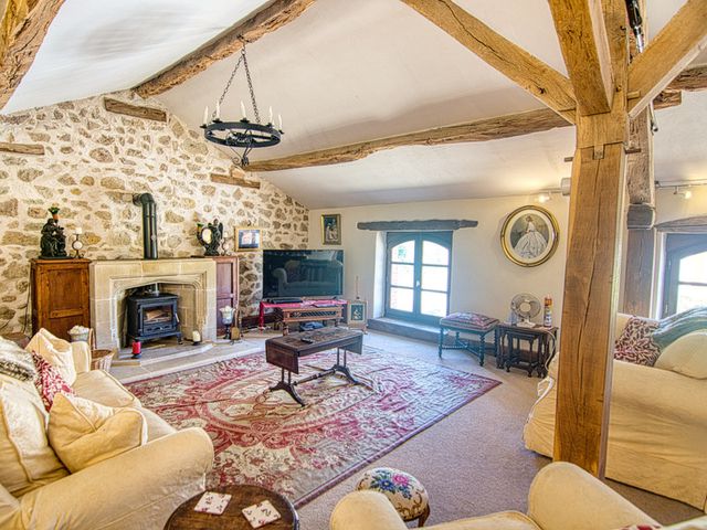 Het hart van het huis is een gastvrije hal met een grote houtkachel, die de centrale verwarming op gas aanvult. De bovenste verdieping is een droom voor elke entertainer, met een bar, een lounge van 50 m² met een open haard en een volledig uitgeruste chef-kokskeuken met uitzicht op het terrein. Geniet van een formeel diner in de ruime eetkamer, met zichtbare stenen muren en eiken balken.
