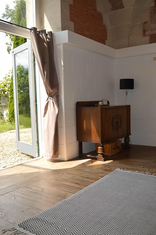 Dit appartement, met een oppervlakte van ongeveer 64 vierkante meter, ligt op een zorgvuldig onderhouden landgoed van ongeveer 16 hectare en bevindt zich op de binnenplaats van een historisch kasteel, met een prachtig uitzicht op zowel het kasteel zelf als het omliggende landschap.