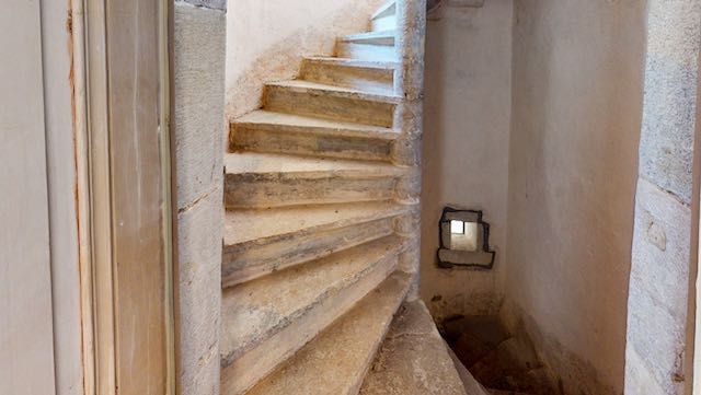 Een oude, gebogen wenteltrap leidt naar het privégedeelte op de eerste verdieping. Hier bevinden zich drie slaapkamers en twee badkamers die een prachtig uitzicht bieden over de landerijen. Deze zijn zeer smaakvol ingericht.