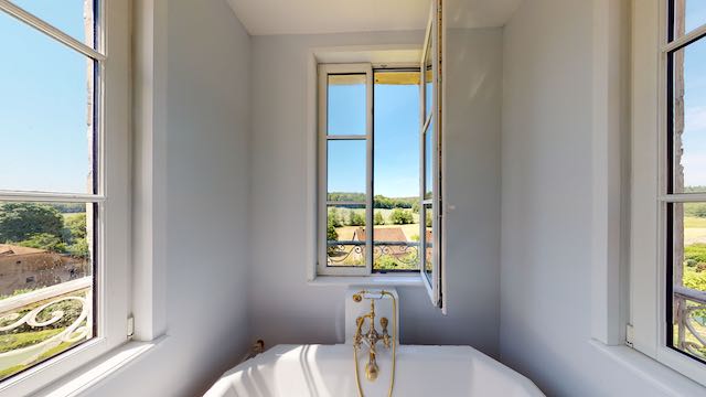 Er is ook een open haard in elk van de slaapkamers. Op de zolder zijn nog extra slaapkamers, waarvan er twee zijn afgewerkt en twee nog in originele staat verkeren.