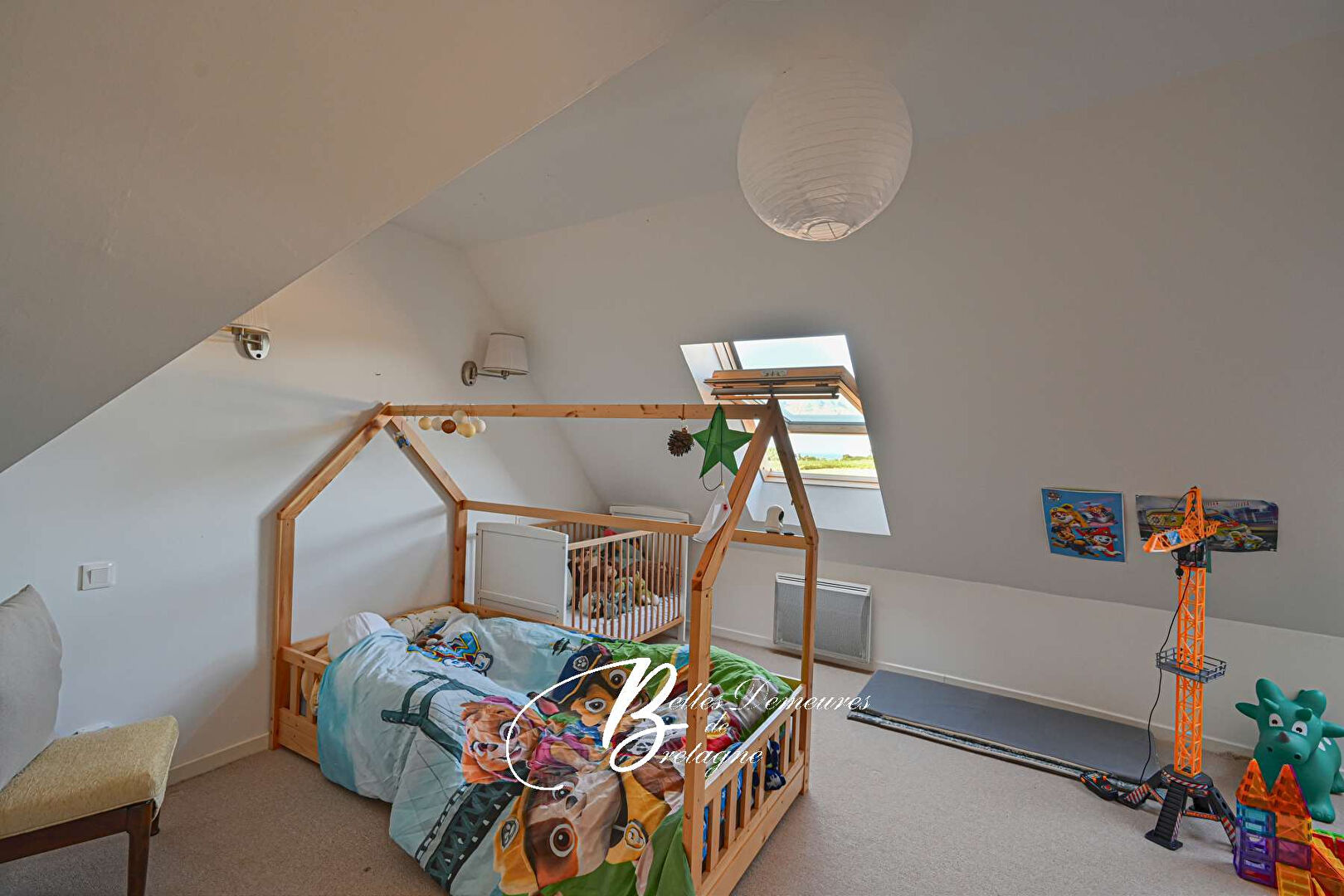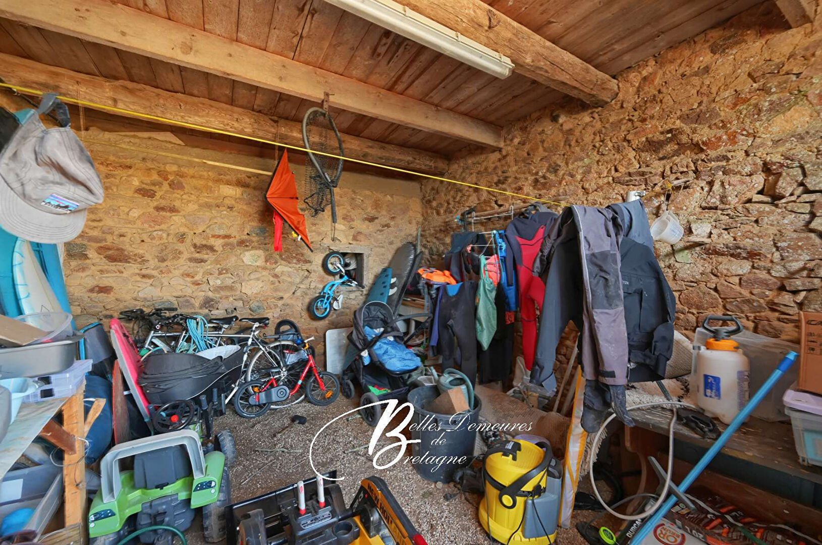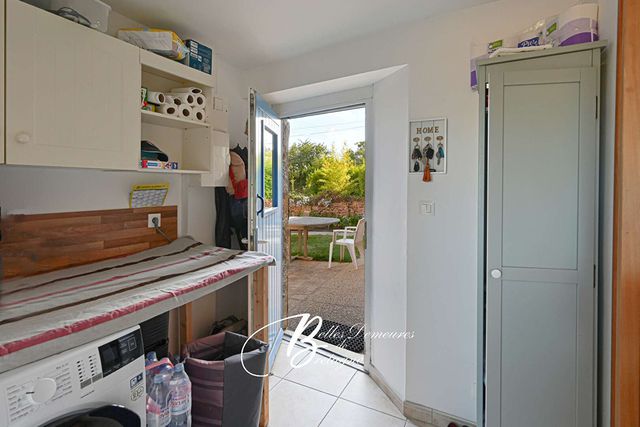 Boven bieden twee aparte slaapgedeeltes privacy en flexibiliteit: een slaapkamer toegankelijk vanuit de woonkamer en een tweede slaapkamer met toilet en toilet, toegankelijk vanuit de keuken-eetkamer. Aangrenzend aan het huis biedt een bijgebouw waardevolle mogelijkheden: een garage voor het stallen van voertuigen of apparatuur, een werkplaats voor doe-het-zelvers of ambachtslieden, en een zolder die naar eigen wens kan worden ingericht.